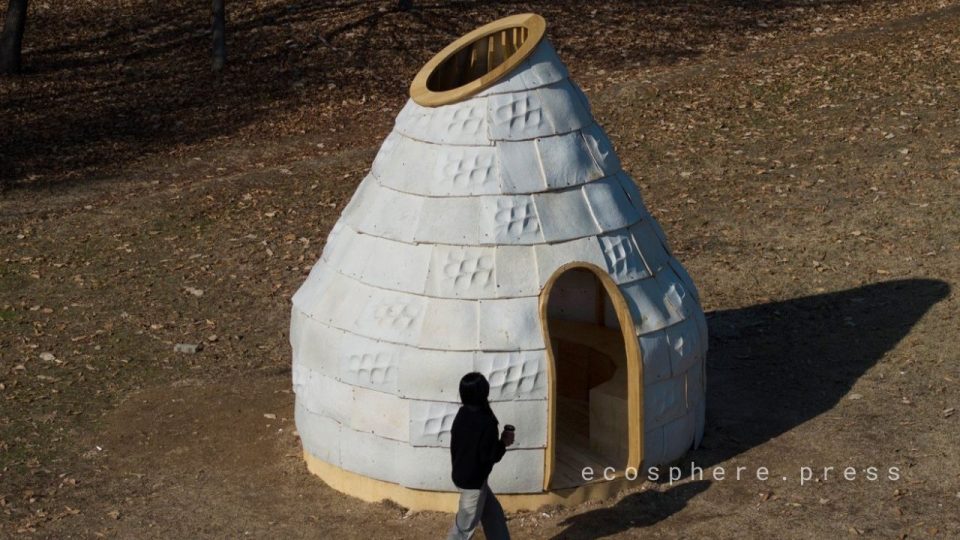 Хижина стоит прямо на территории Сеульского национального университета науки и технологий. Не в закрытой лаборатории, не в футуристическом павильоне — в обычном кампусе. Каждый, кто проходит мимо, сталкивается с идеей: возможно, здания могут быть частью экосистемы, а не её врагом.