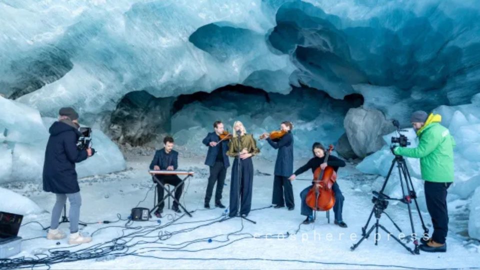 Швейцарская певица Тиффани Лимахер дала концерт внутри ледника. Вместе с небольшим ансамблем она выступила в ледяной пещере ледника Мортерач в Восточных Альпах — одного из наиболее быстро тающих ледников Швейцарии.